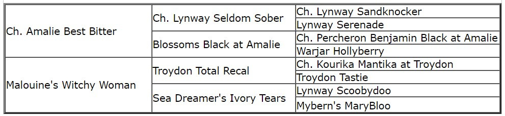 Sire: Ch.Amalie Best Bitter Dam: Malouine's Witchy Woman