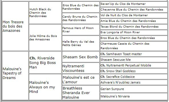 Sire: Mon Tresore du bois des Amazones Dam: Malouine's Tapestry of Dreams