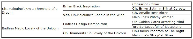 Sire: Ch.Malouine's On a Threshold of a Dream Dam: Endless Magic Lovely of the Unicorn