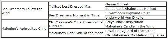 Sire: Sea Dreamers Follow the Wind Dame: Malouine's Aphrodite's Child