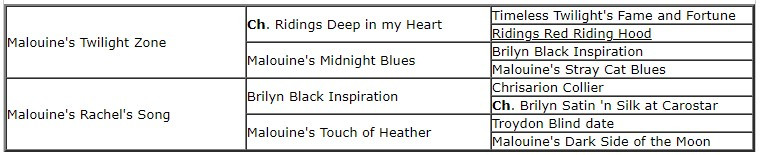 Sire: Malouine's Twilight Zone Dam: Malouine's Rachel's Song